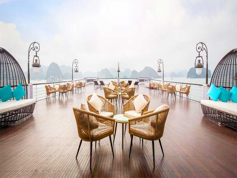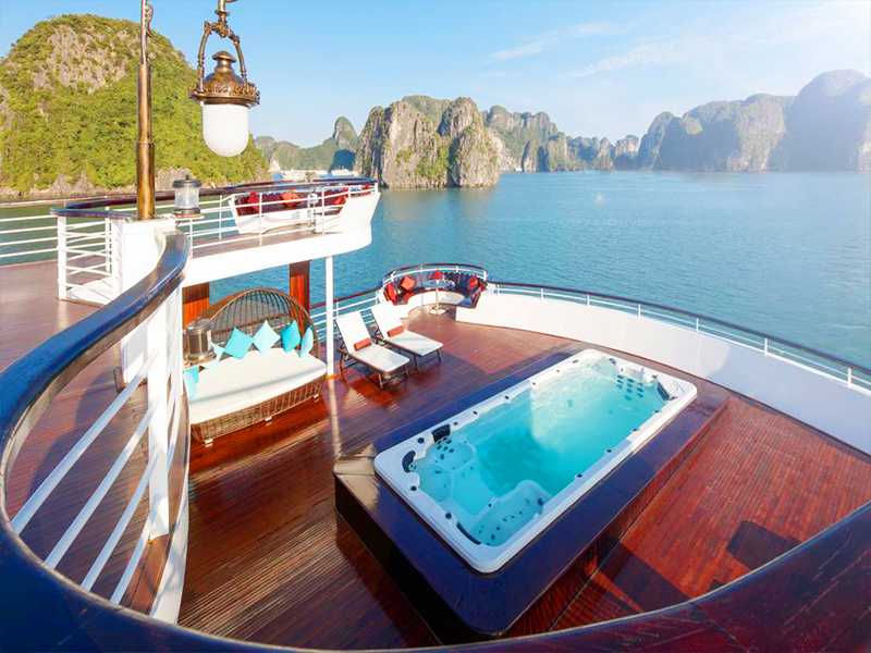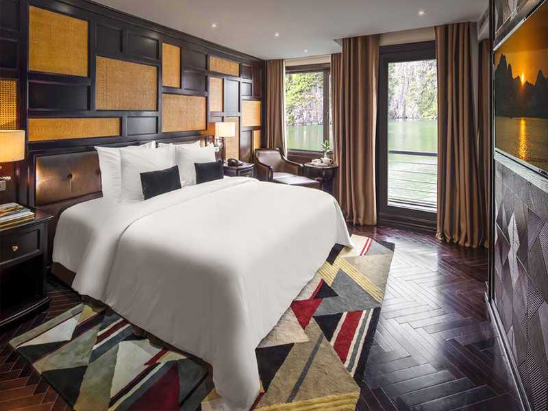 The 46-cabin cruise ship enjoys two capacious sundecks with wrap-around views, an outdoor Jacuzzi from which to gaze at evening sunsets, and an onboard spa from renowned Vietnamese wellness group Kaia.